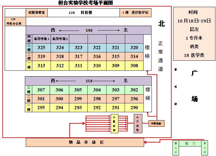 所有考生入场前均须接受严格、规范的两次人工安检和一次智能安检,并进行人脸识别检查,如有异常情况,将进行复检复查,请服从考点工作人员管理。为避免反复安检影响正常入场考试,请不要携带钥匙(含汽车钥匙)、充电器、磁卡、打火机以及金属材质的手镯、戒指、项链、发卡等物品,不穿戴有金属装饰品的衣服、鞋帽等。请妥善放置个人随身物品,以免因违反规定造成考试违规、延误或物品丢失等情况发生。