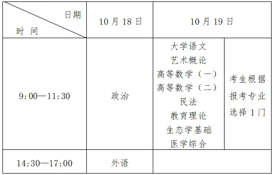 (二)专科起点升本科考试时间表